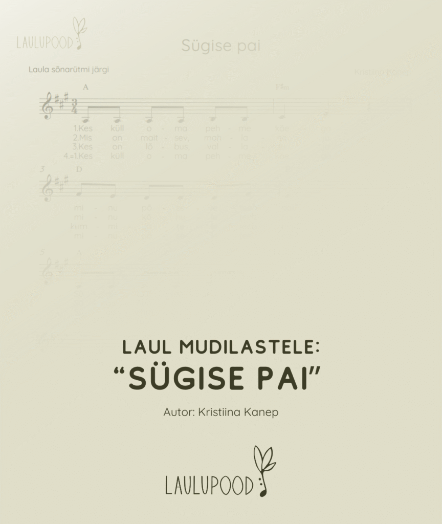 Olen Kristiina Kanep, lauluõpetaja ja Laulupoe looja. Töötades igapäevaselt lastega, tean, kui keeruline ja ajamahukas võib olla sobiva repertuaari leidmine. Iga lapse hääleulatus, tämber ja oskused on erinevad, ning tihti ei leia isegi pärast pikka otsimist täpselt õiget laulu. Just sellest vajadusest lähtudes sündis Laulupood – platvorm, mis teeb lauluõpetajate töö lihtsamaks ja kiiremaks. Minu eesmärk on pakkuda teile kohandatavaid lastelaulude noote ja fonogramme, mida saate paari klikiga leida ja alla laadida. Usun, et muusika õpetamine peaks olema rõõm, mitte stress, ja Laulupood on loodud just selleks, et saaksite rohkem keskenduda oma õpilaste arendamisele, mitte repertuaari otsimisele.